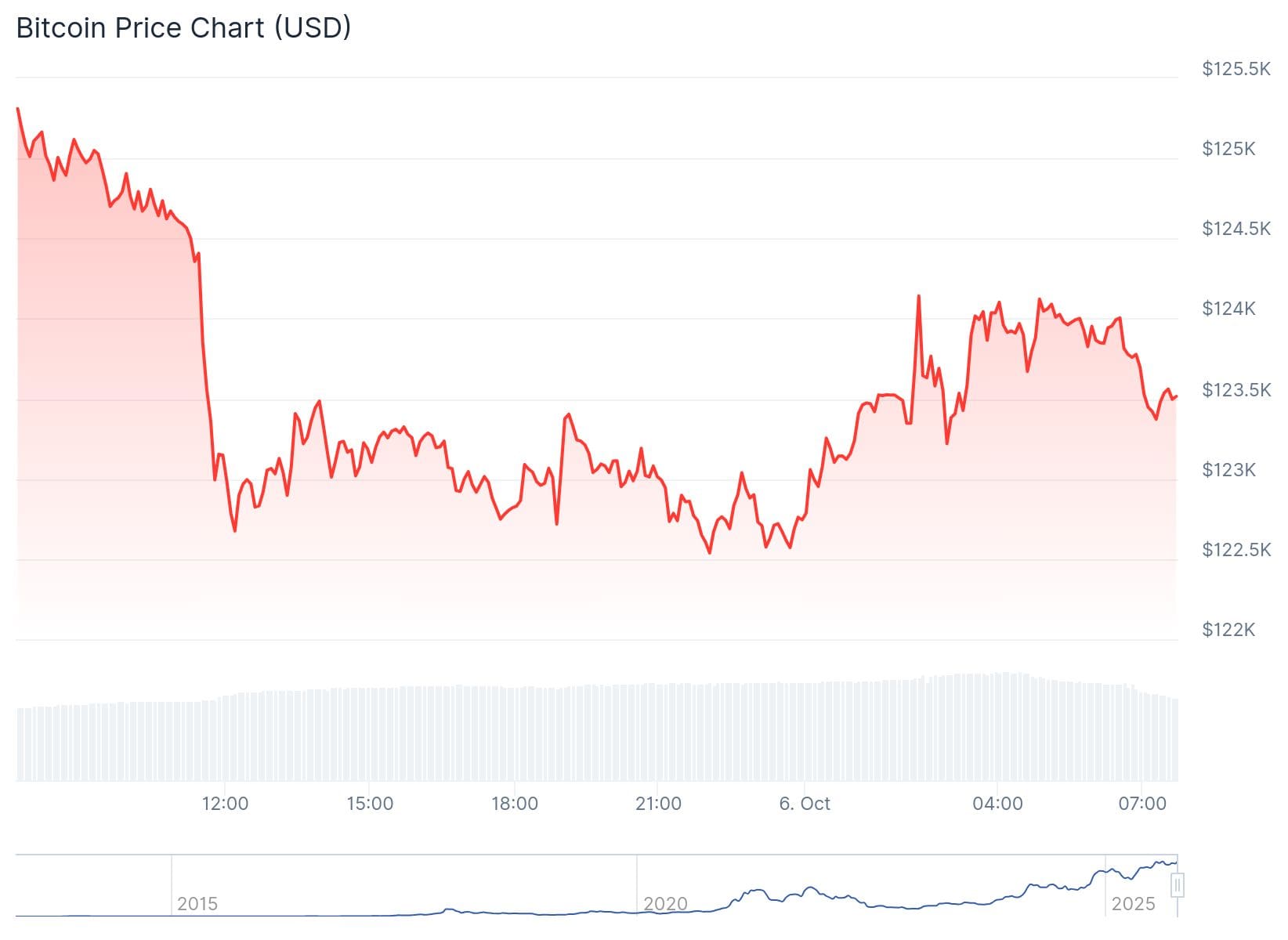 Ayer, al final de la mañana, el precio del bitcoin sufrió una dolorosa caída hasta un mínimo de 122.600 dólares. Hasta bien entrada la noche, la moneda digital apenas se movió. Después, recuperó algo de terreno.