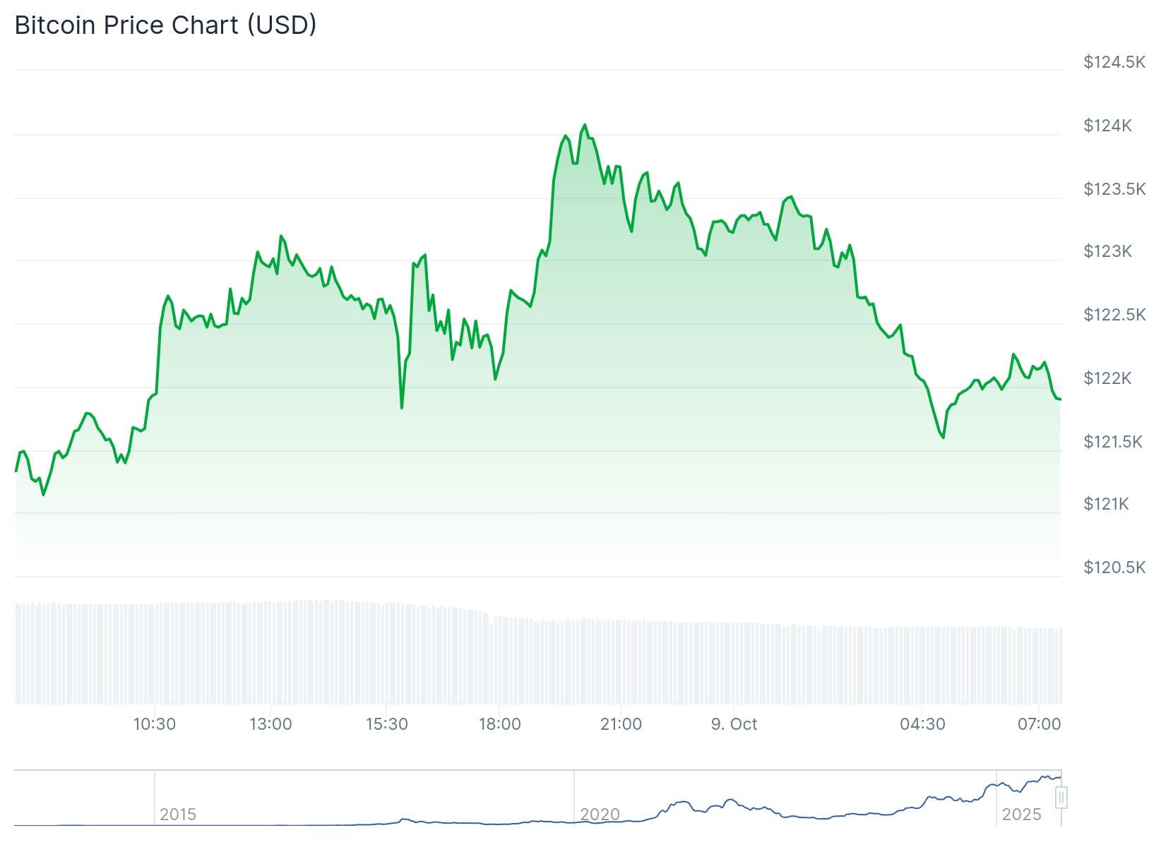 El martes, el precio del bitcoin se desplomó de 125.000 dólares a 120.650 dólares, pero ese mismo día volvió a subir hasta los 122.000 dólares. Ayer, el bitcoin continuó esta tendencia con una subida hasta los 124.000 dólares.