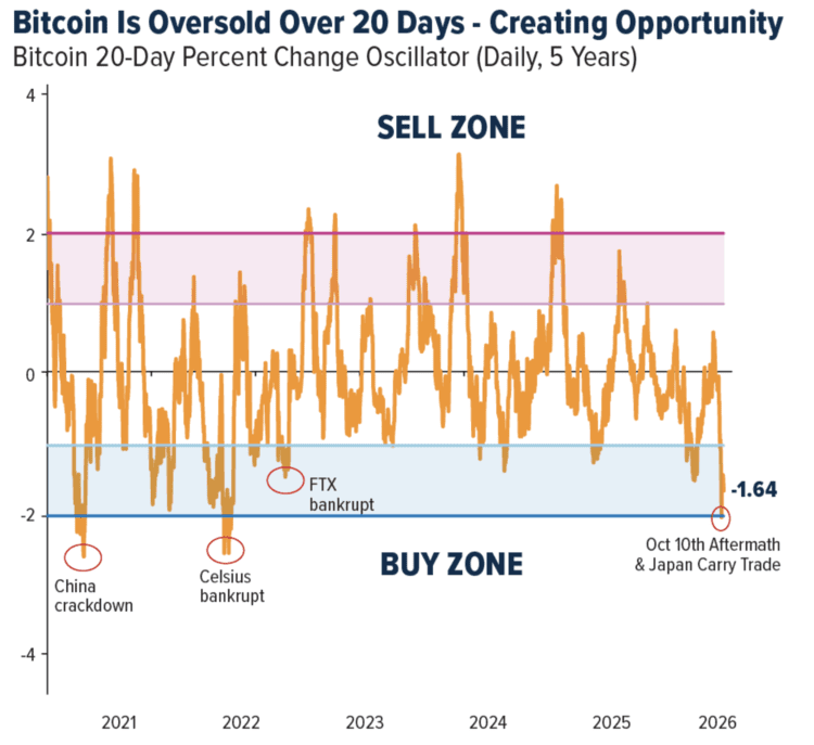 Según Holmes, el precio se sitúa aproximadamente dos desviaciones estándar por debajo de esa media reciente. Este tipo de desviaciones extremas solo se ha producido en contadas ocasiones en los últimos cinco años y, en esos casos, a menudo fue seguida de un repunte temporal.