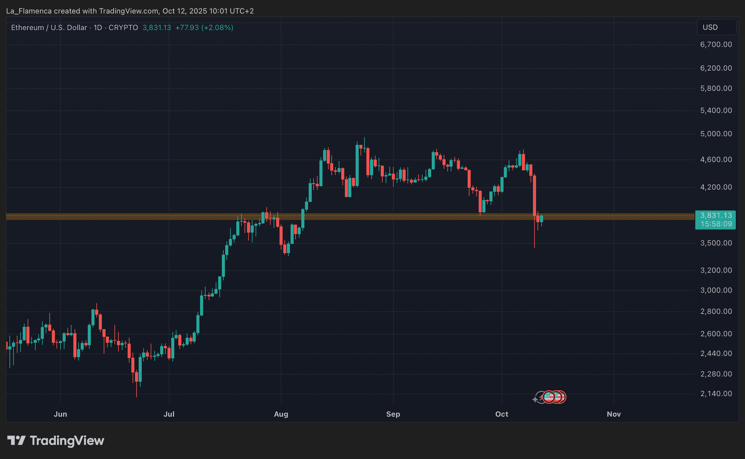 En este momento, la moneda vale 3.831 dólares, lo que significa que el precio del ethereum, al igual que el del bitcoin, se encuentra en un importante nivel de soporte.