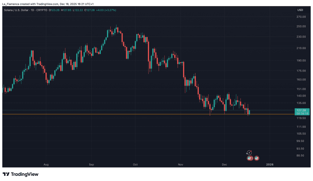 Gráfico de precios diario SOL/USD con nivel de soporte. Fuente: La_Flamenca a través de TradingView.